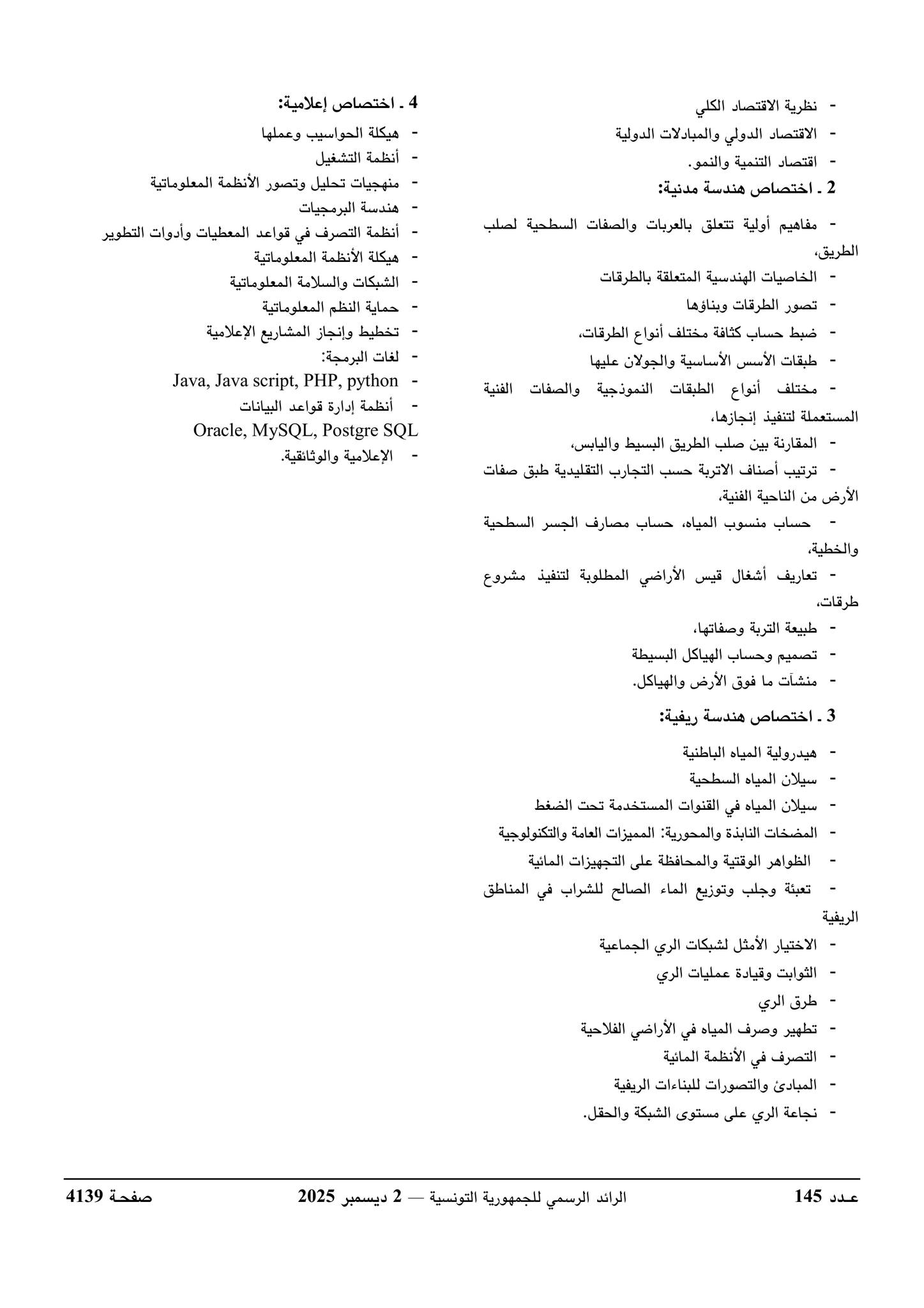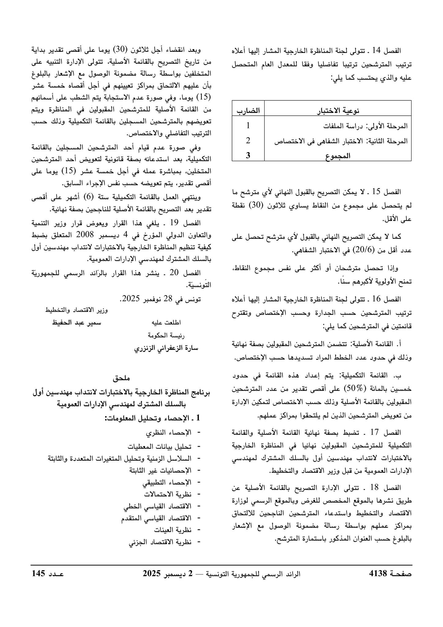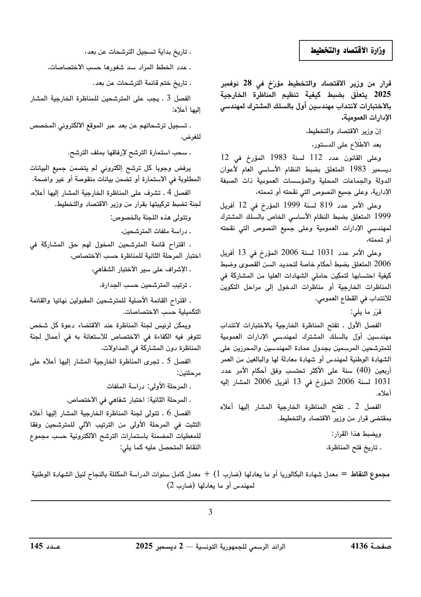 المصدر : قرار وزير الإقتصاد والتخطيط المؤرخ في 28 نوفمبر 2025.