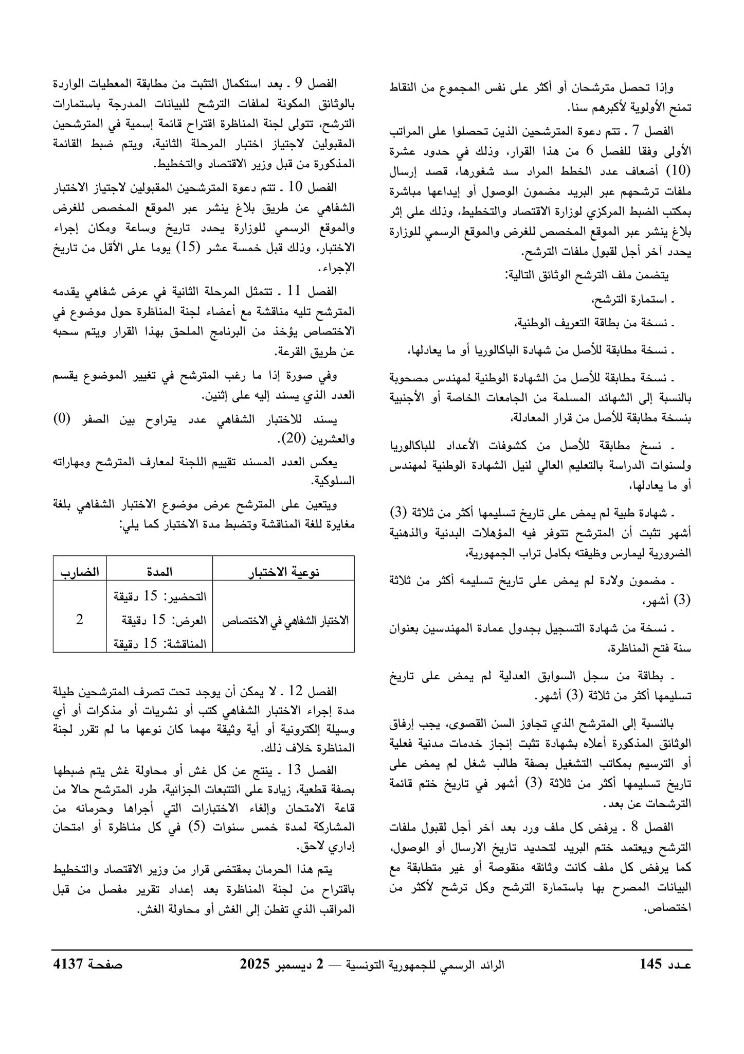 تنظم المناظرة يوم 2 جانفي 2026 والأيام الموالية.