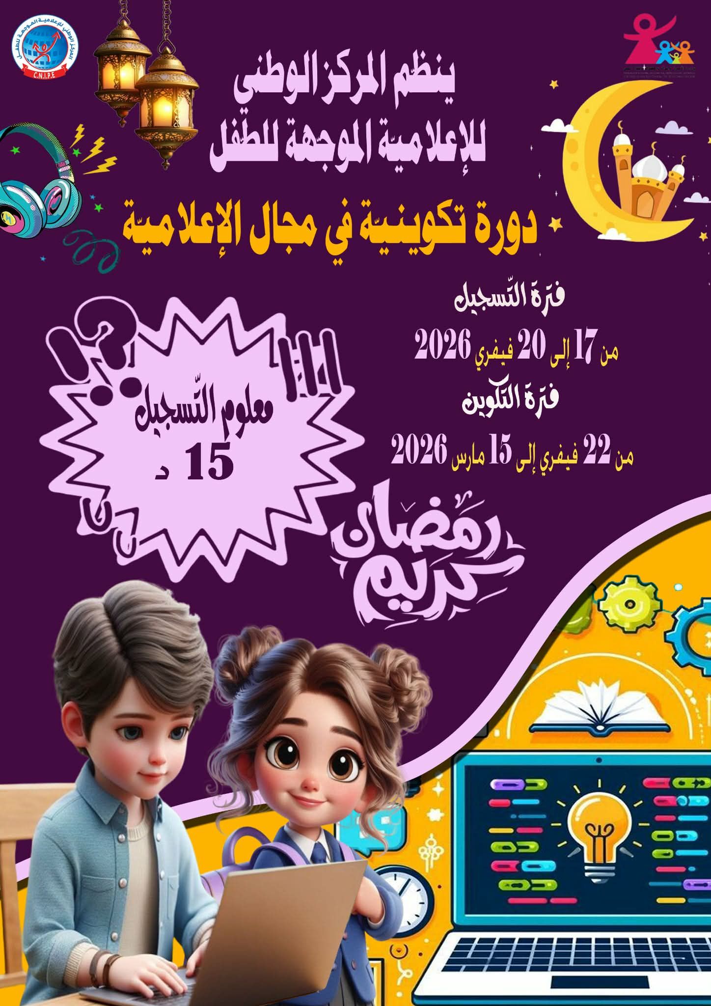 يعتزم المركز الوطني للإعلامية الموجهة للطفل تنظيم دورة تكوينية في مجال الإعلامية خلال شهر رمضان.